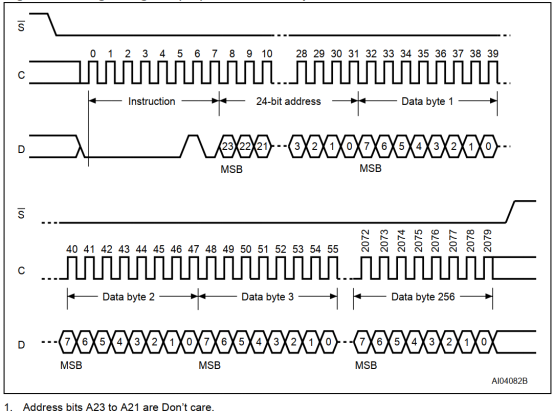 PP(Page Program :页编写):发送命令PP(02H),接着发送3个字节的地址,然后发送数据即可。切记所写的数据不能超过本页的地址范围。