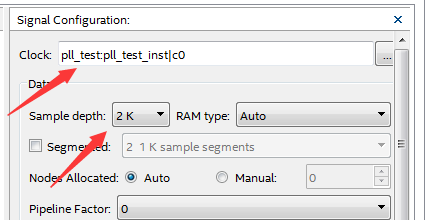 采样时钟选择10MHz(PLL 的c0),采样深度设置为2K。