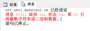 在SET ANSI_WARNINGS 为ON 时才会产生警告,OFF时将没有任何警告.