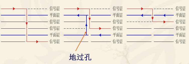 信号线(特别是关键信号线)换层时,应在其换层过孔附近设计过地孔,这样可以有效减小信号回路面积,减小辐射和增强抗扰度。