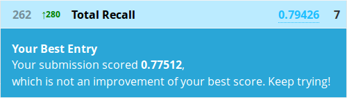 预测函数与决策树的工作方式类似,我们可以完全相同的方式构建提交文件。但需要更长的时间,因为所有2000棵树都需要进行分类,然后讨论谁是对的: