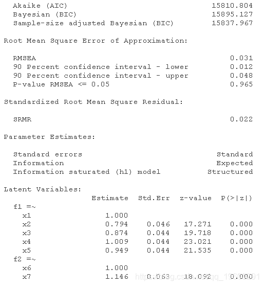语法二:f1 =~ item1 + item2 + item3(测量模型)