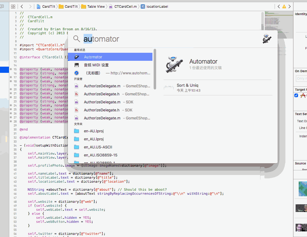 Command + Shift + 0 (Zero)打开文档和参考,键入代码中的某个关键字,文档提供了一些额外的资源和示例工程。当然也可以在变量、类或者方法名上执行Option+双击名称操作,从而更方便地跳转至文档。