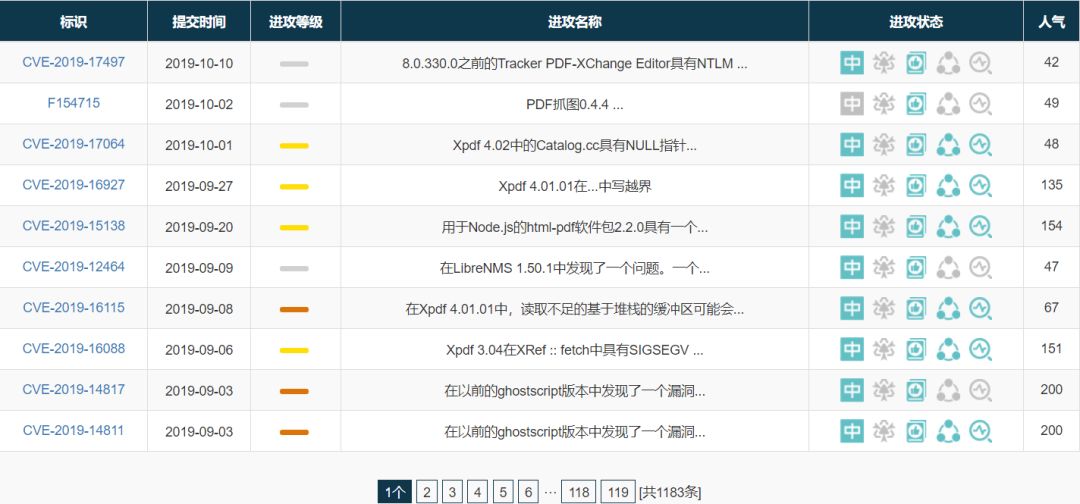 上CVE看了下关于PDF文件相关的漏洞还真不少,收录在CVE中就有1183条。
