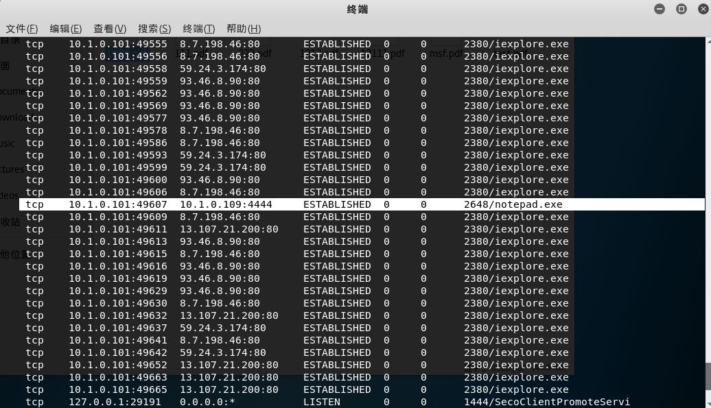 2.使用migrate将进程迁移至notepad上,保持连接状态。