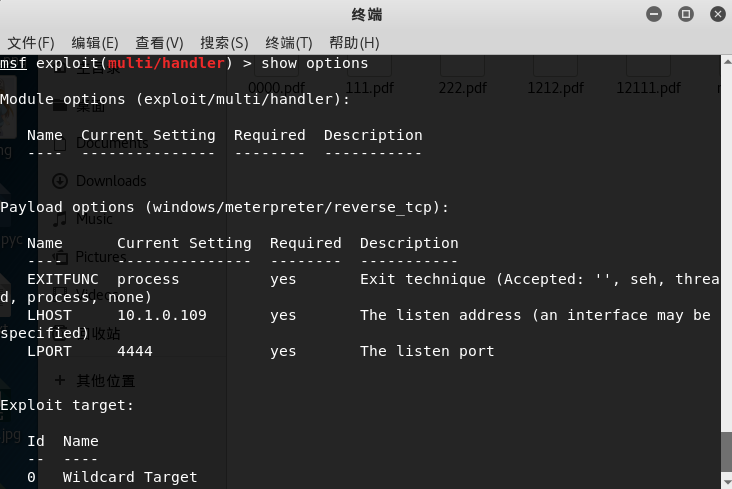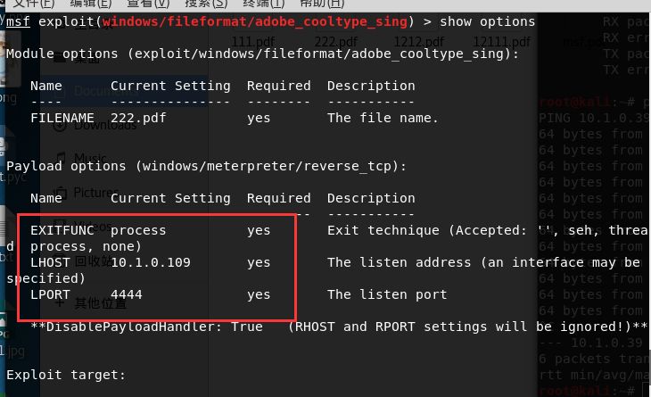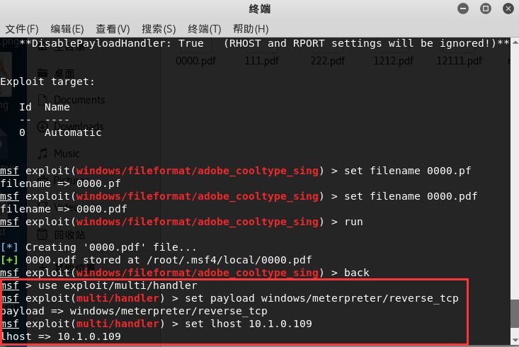一、开启我们的kali,使用Metasploit来生成PDF木马文件。