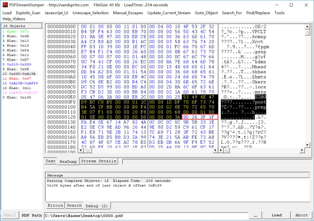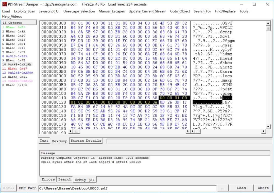 软件:Adobe Reader 9.0、PdfStreamDumper.exe、IDAPro6.6