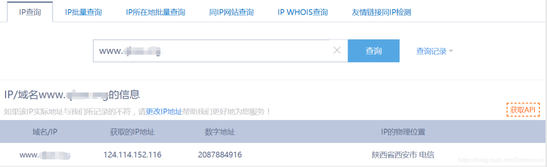 第一步:选择目标网站(http://www.xxxxx.org/Login.aspx),并获取其IP地址,可以采用Ping命令实现。这里采用站长之家(http://ip.tool.chinaz.com/)获取,其IP地址为:124.114.152.116 。
