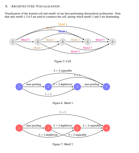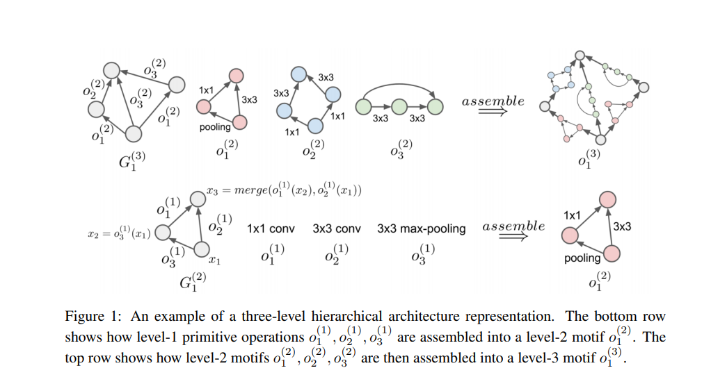 对于层次化结构,将在不同层次上有若干个不同的 motifs。在较高层次的 motifs 构建过程中,较低层次的 motifs 被作为构建模组。