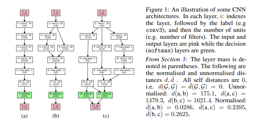 作者提出了一种神经网络结构的 (伪) 距离,称为 OTMANN(神经网络结构的最优传输度量),可以通过最优传输程序进行快速计算。他们还开发了一个 BO 框架来优化神经网络结构上的函数,称为 NASBOT(使用贝叶斯优化和最优传输的神经结构搜索)。