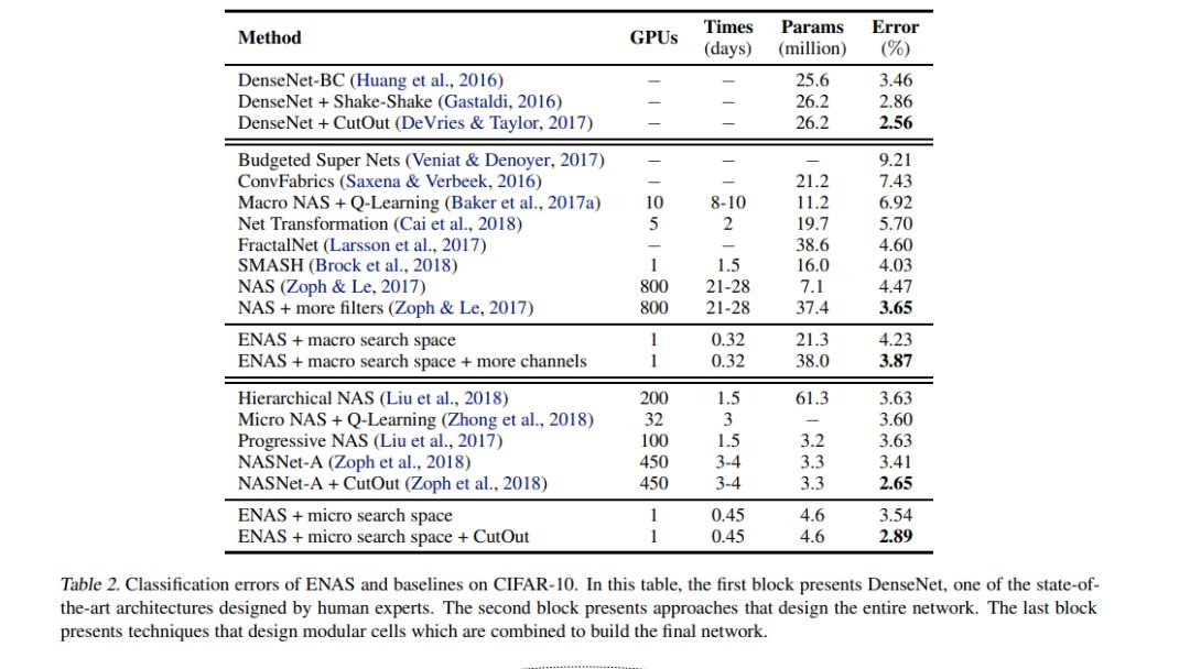 以下是 ENAS 在 CIFAR-10 数据集上的表现情况: