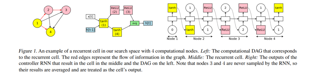 本文用单个有向无环图(DAG)表示 NAS 的搜索空间。通过引入一个具有 N 个节点的 DAG,设计出了递归单元,该单元表示局部计算,图中的边表示 N 个节点之间的信息流。