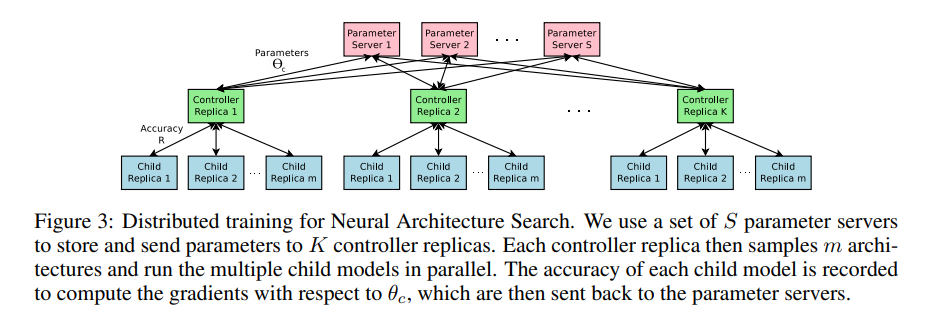 于子网络的训练需要花费数小时的时间,为了加快控制器的学习过程,作者采用了分布式训练和异步参数更新的方法。
