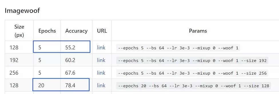 作为我们自己测试的一部分,对于ImageWoof数据集的5 epoch测试,我们可以说: