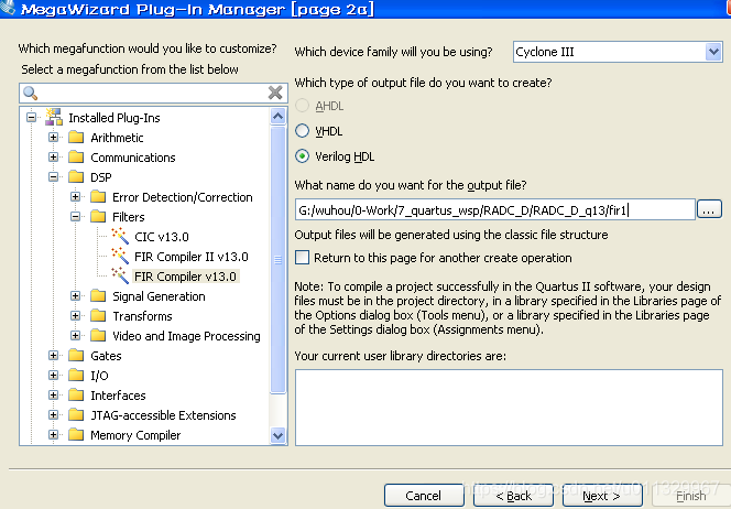 1、Quartus13.0在32位上可以使用FIR IP核,但64位电脑不行,对于64位电脑建议使用15.0版本。