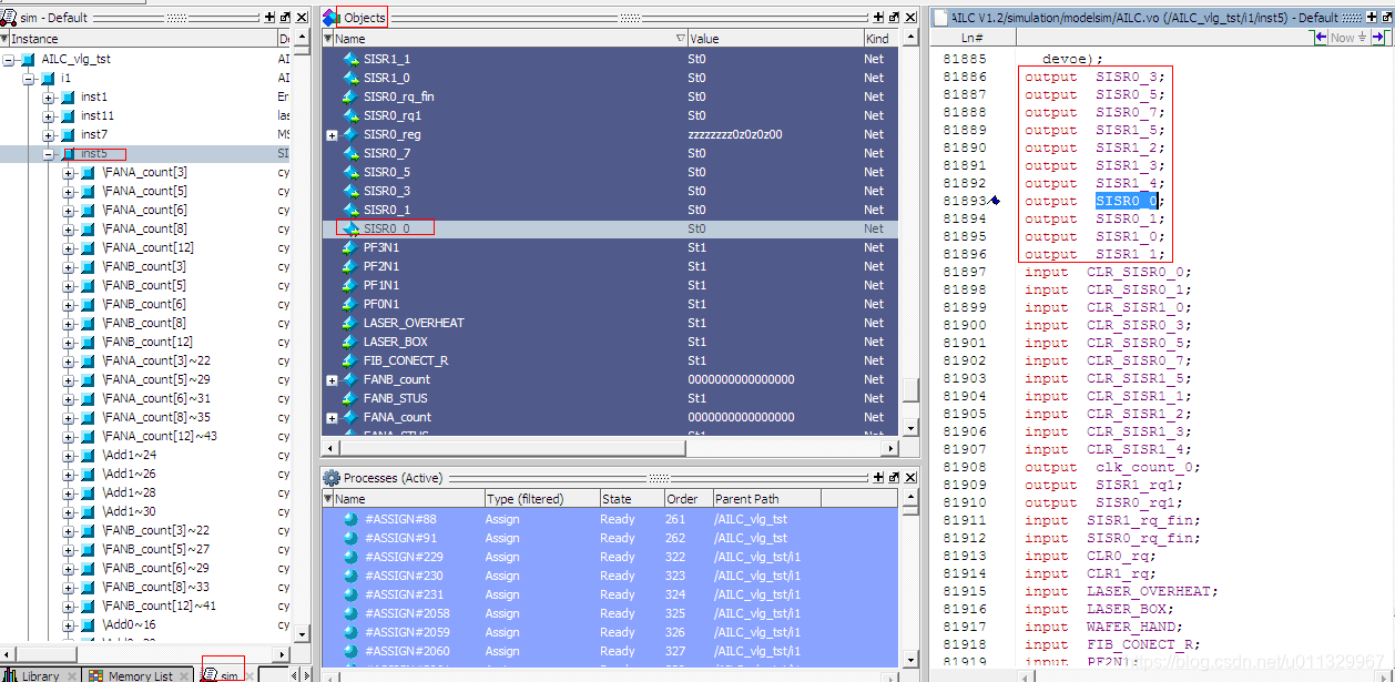 特殊情况:SISR0寄存器虽然定义为reg[15:0]但由于某些位没有驱动,实际生成的网表是按SISR0_0、SISR0_1…来定义的,可以右击->view declaration在.vo文件查看。