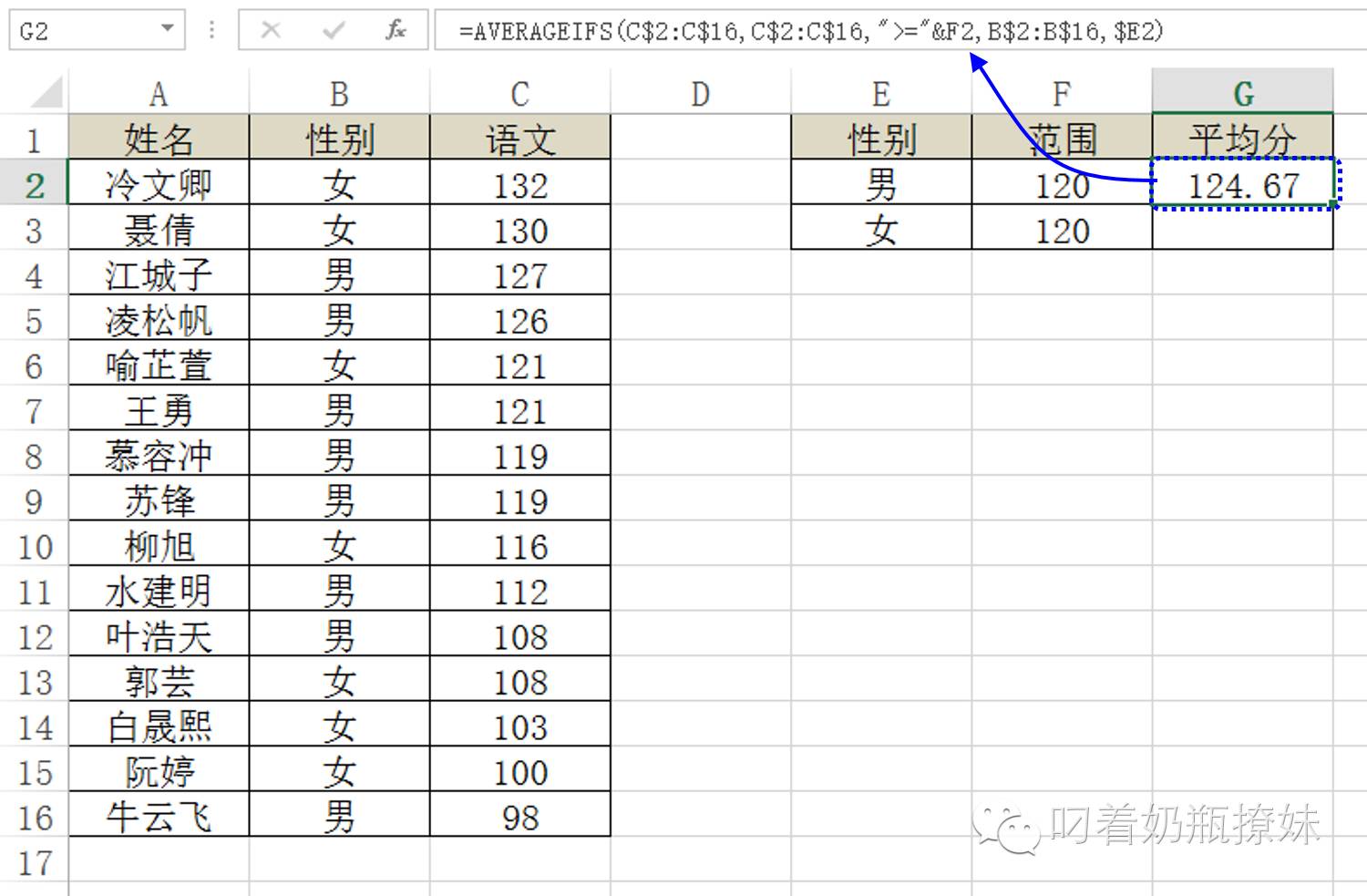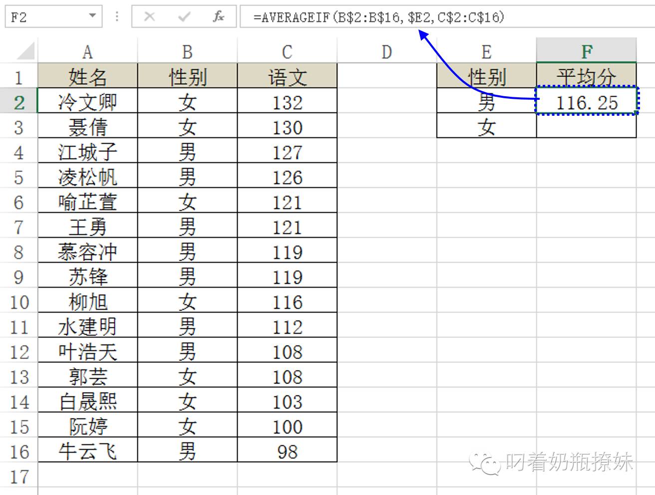=AVERAGEIF(B$2:B$16,$E2,C$2:C$16)