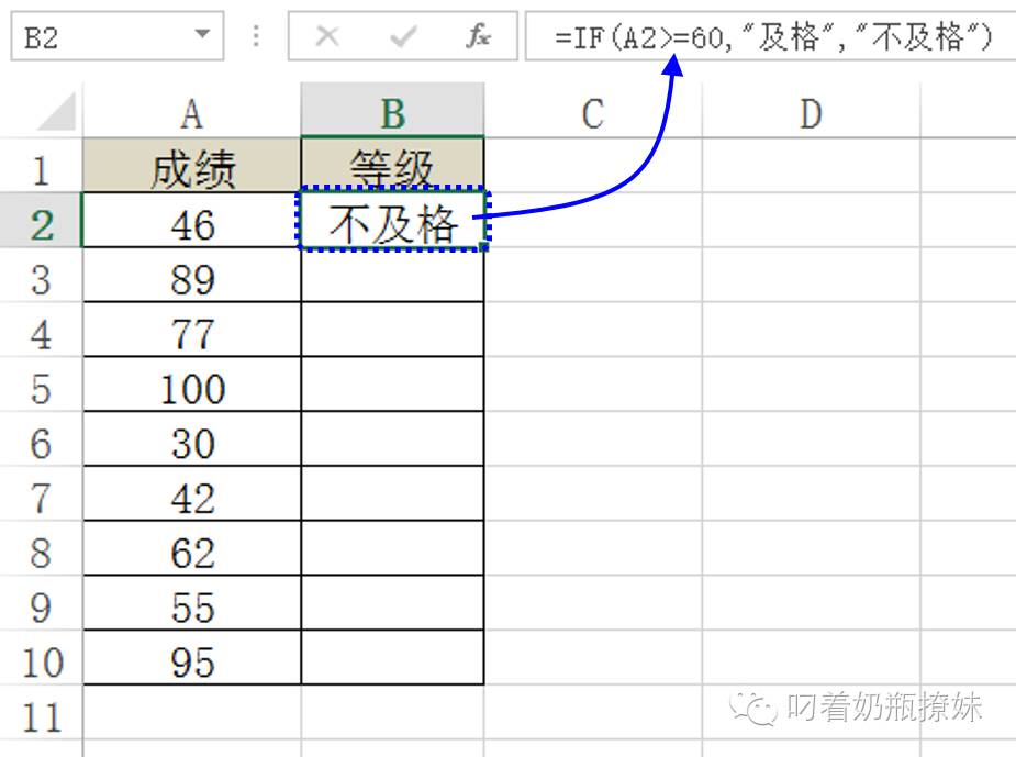 =IF(A2>=90,"优秀",IF(A2>=80,"良好",IF(A2>=60,"及格","不及格")))