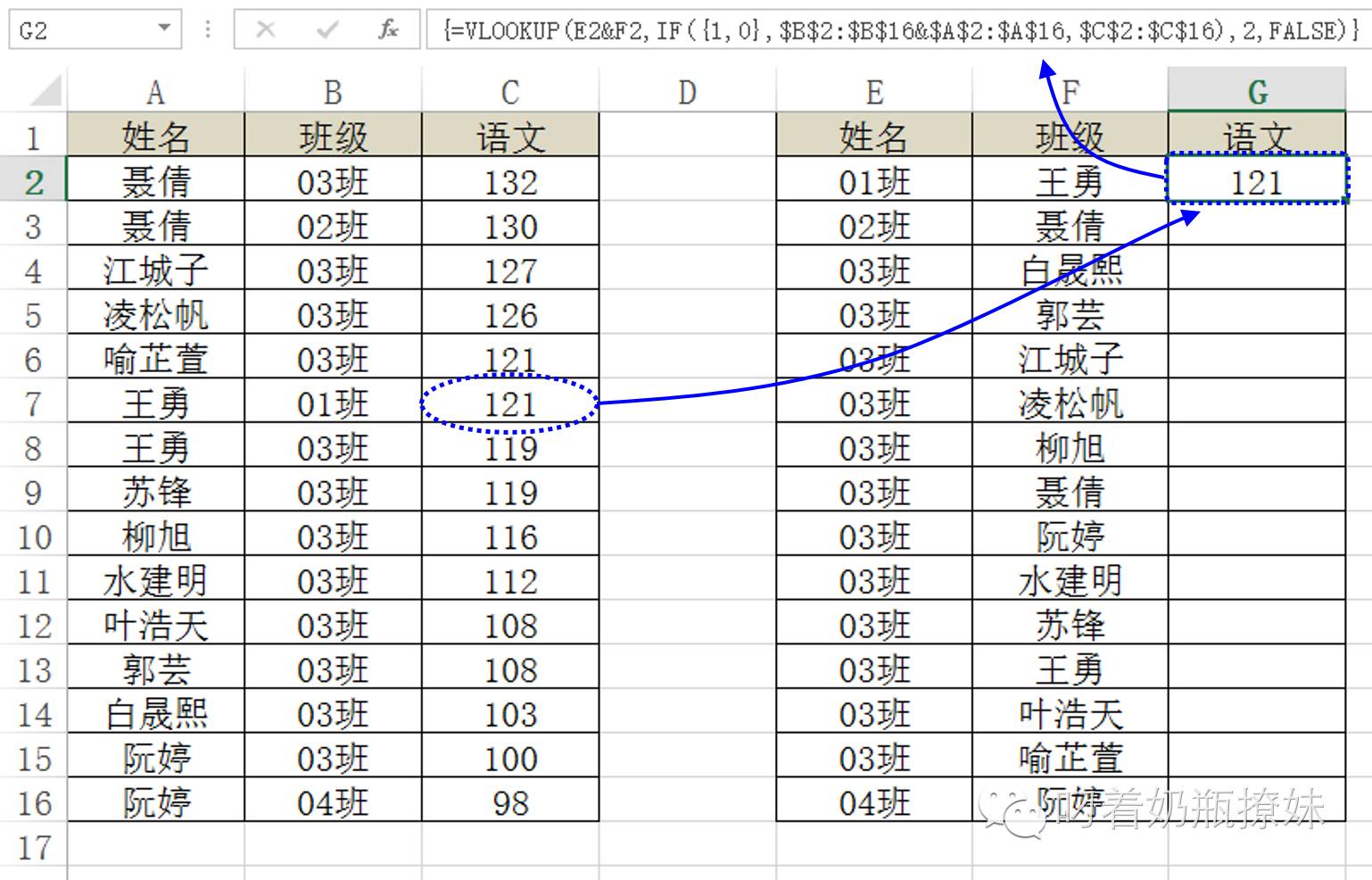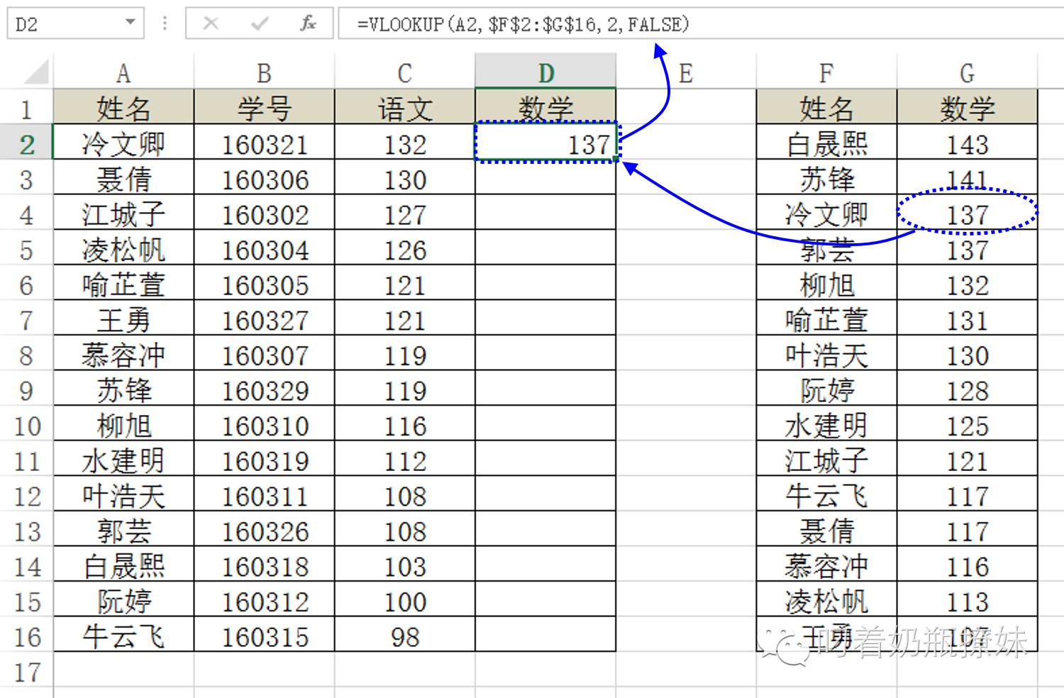 问题描述:将下图中G列的数据根据学生的姓名填充到D列。