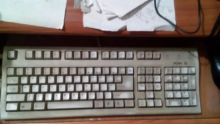 有人问这个键盘难道没有擦过吗?不是的,是擦不掉的岁月痕迹。如果有注意到细节的朋友会发现,程序员什么键位用得最多。除了(ASDW,YUHJ,那是我小时候玩拳王留下的)。这个键盘虽然老旧,但是我爸一直不舍得扔。03年的时候,他从二手市场买会来了这台486Cpu主频的二手电脑,开始自学汇编。我爸是只有初中文化。但是有超强的动手能力。