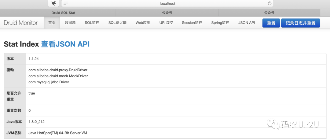启动项目,然后访问 localhost:8080/druid/ 就会进入 Druid 的监控界面,界面如下:
