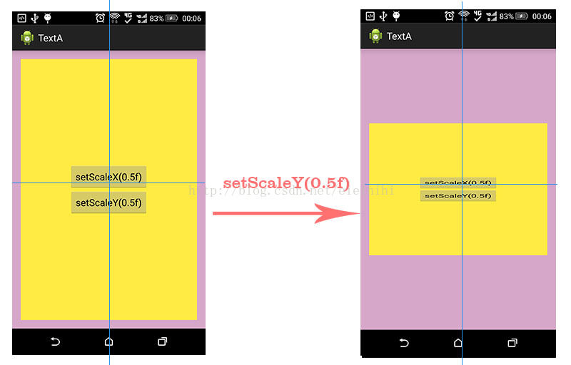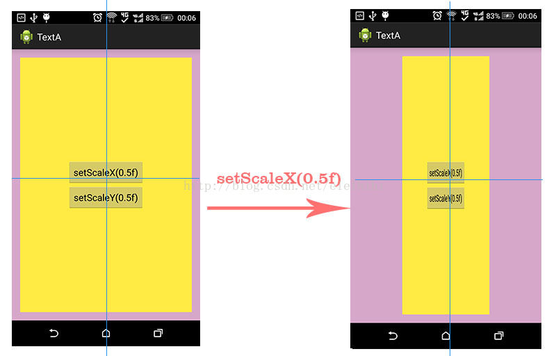 通过调用setScaleX()和setScaleY()方法,可以实现View的缩放,其效果图如下所示