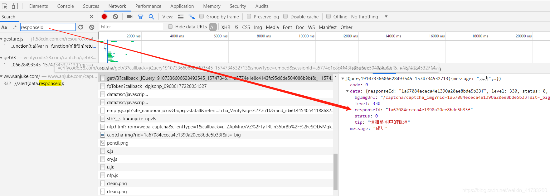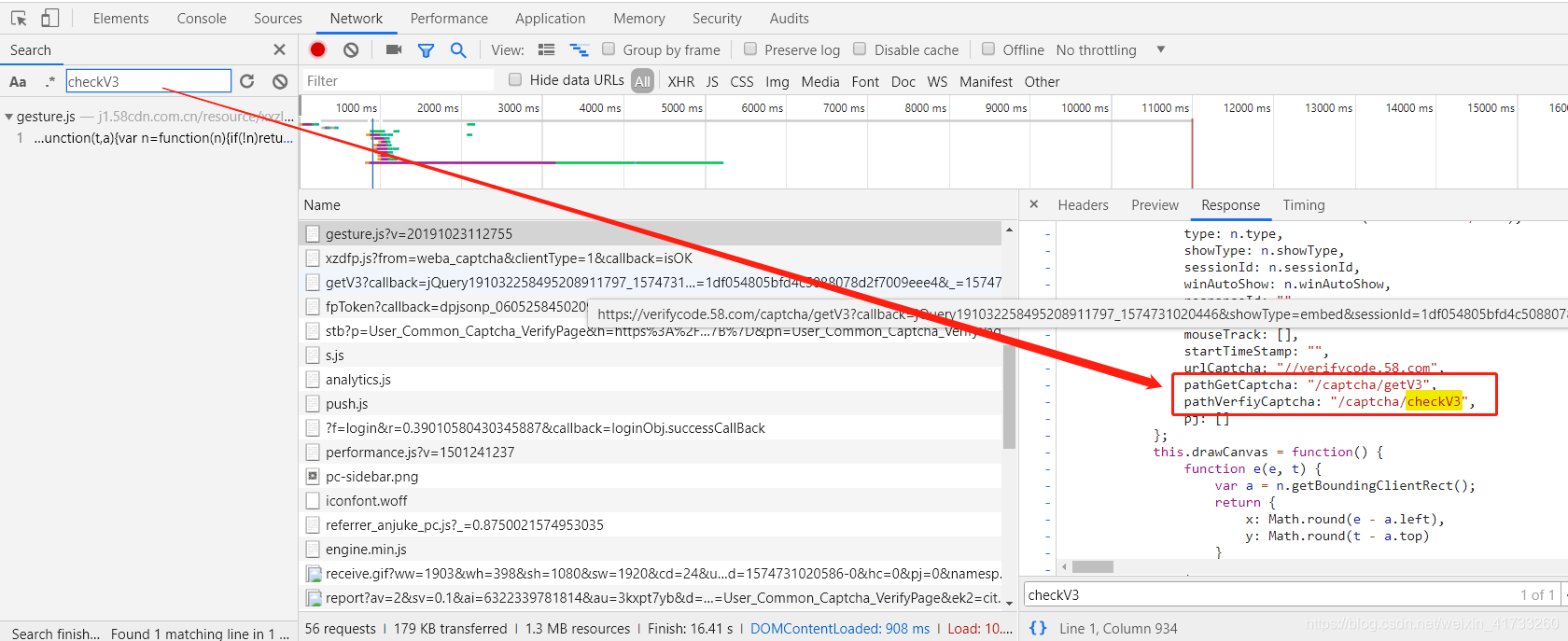 找校验的URL,通过校验请求,得知校验的url: https://verifycode.58.com/captcha/checkV3