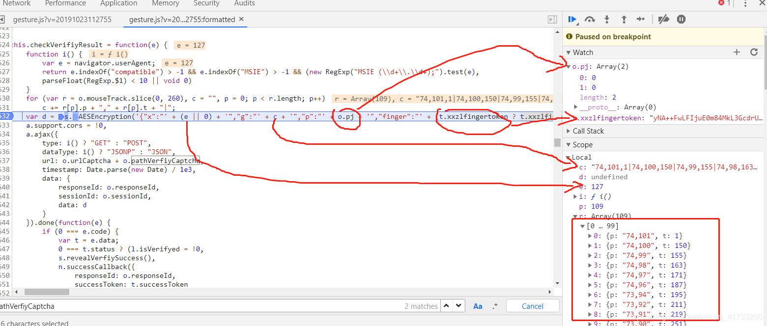 可以看到加密所需的四个参数 e, c , o.pj, t.xxzlfingertoken。
