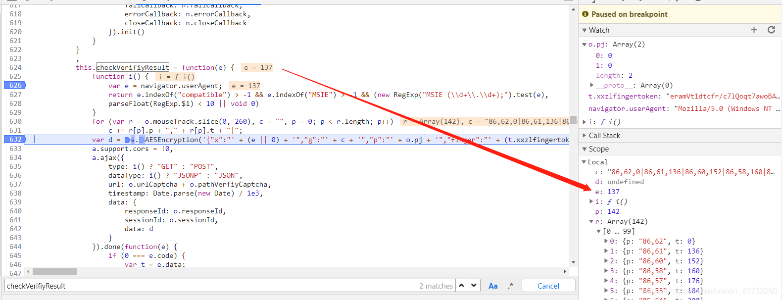明眼看到上面有个AES这个对称加密函数,大概率就是要通过它来加密data里的值,找一下确实是它进行参数加密,用的是CryptoJS加密