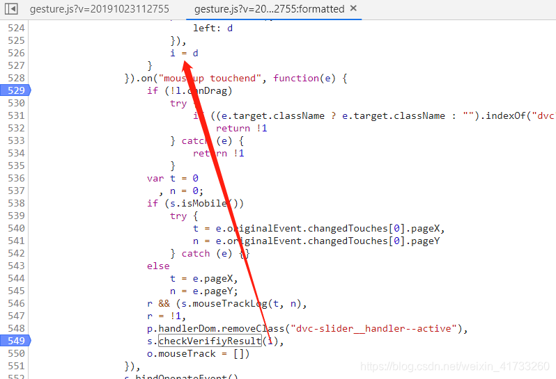 其中526行这里不能打断点,因为一滑动轨迹就会断到,然后这个i应该是和我们滑动的轨迹有关。于是回来又看堆栈里的r数组
