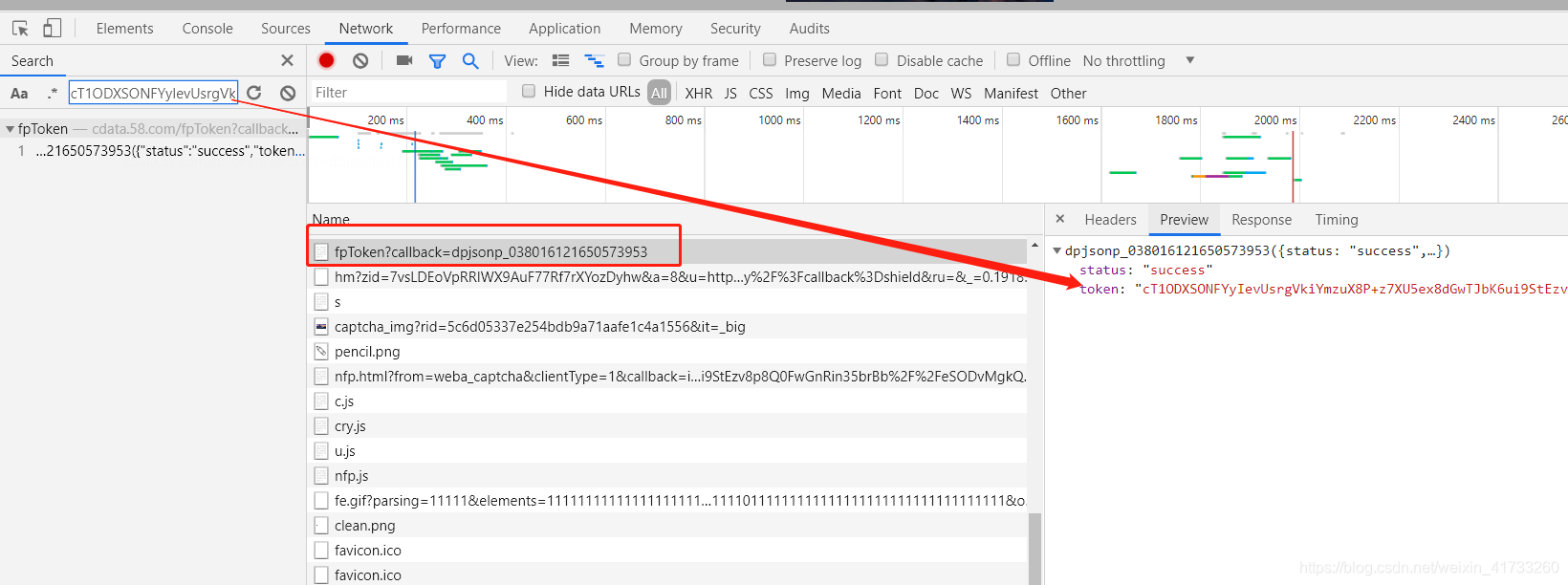 找到就是一个请求的返回值,而且对应了status和token,正好可以直接来用