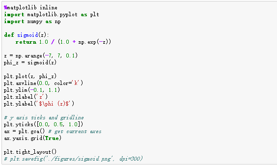 为了帮助理解,下面首先用代码画出sigmoid函数,也即1/1+e^(-z):