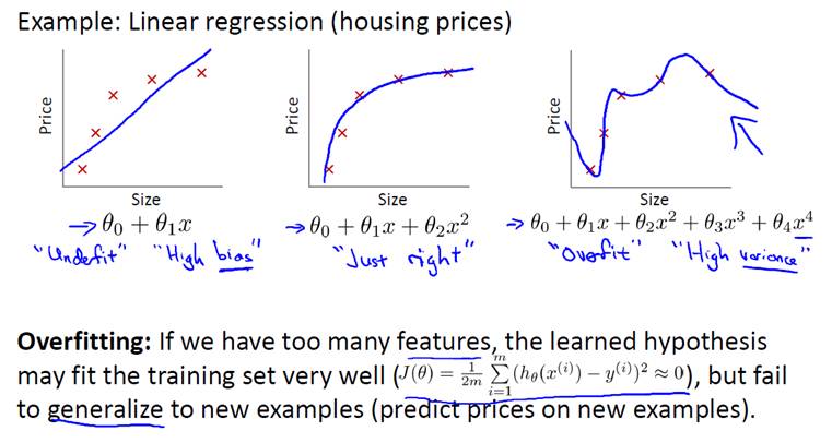所以,我们把这类情况叫做过拟合(overfitting),也叫高方差(variance)。