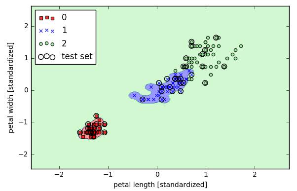 gamma parameter 可以被理解为 cut-off parameter for Gaussian sphere, gamma 增加, 也就增加了训练样本的影响, 也就会使决策边界变得模糊。
