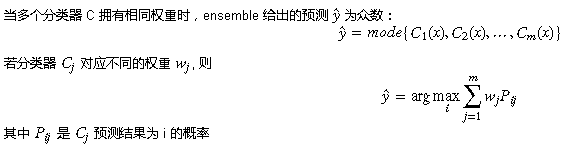 就是将多个不同的分类器集合组合为一个大的分类器, 选择最终结果是以 majority voting为准。即使每个单独的分类器错误率较高, 但将多个分类器组合之后, 错误率就会大大降低。