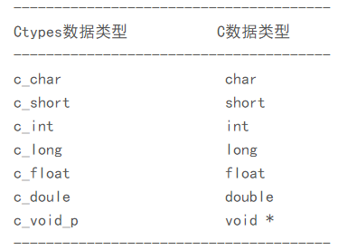 ctype模块中含有的基本类型与C语言类似,下面是几个基本的数据类型的对照: