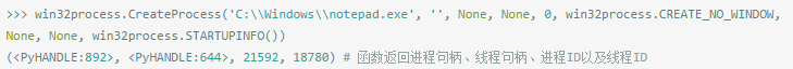 为了便于控制通过脚本运行的程序,可以使用win32process模块中的CreateProcess()函数创建