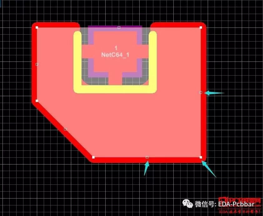 方法3:点击要修铜的区域,拖动显示的小方块,以达到倒角的效果。
