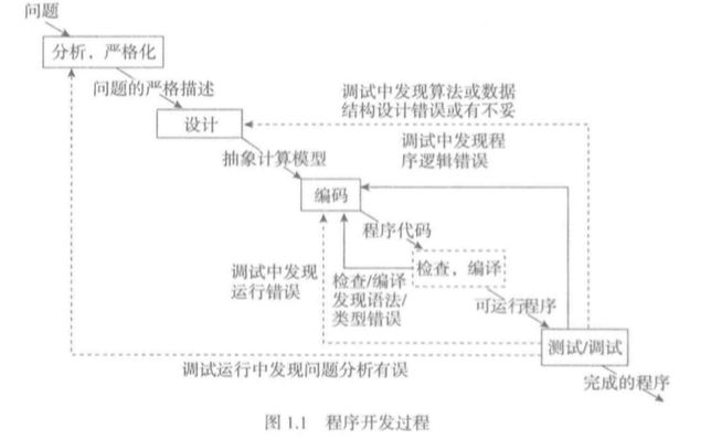 既然用计算机解决问题是要开发出解决问题的程序,那么程序又是怎么开发出来的呢?来看下图。