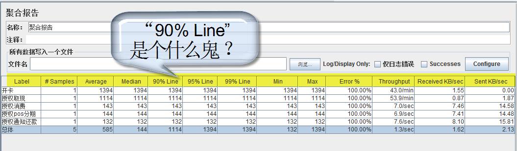 6、 95% Line:95%用户请求响应时间,请参考90% Line解释