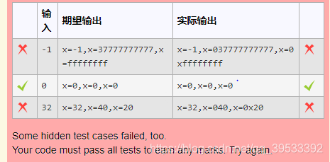 %#o和%#x会输出八进制和十六进制的前缀,该题目要求不输出八进制和十六进制的前缀。
