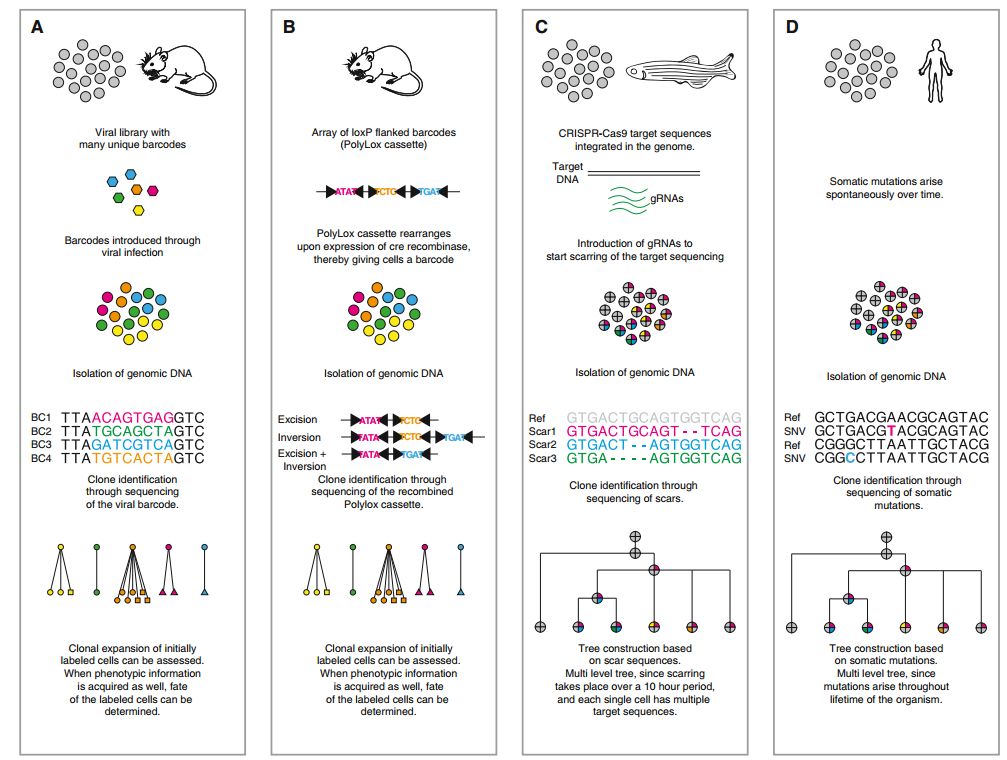 4、这篇综述的侧重点在单细胞测序用于细胞谱系(lineage)追踪,内容包括了不同的算法、策略等等: