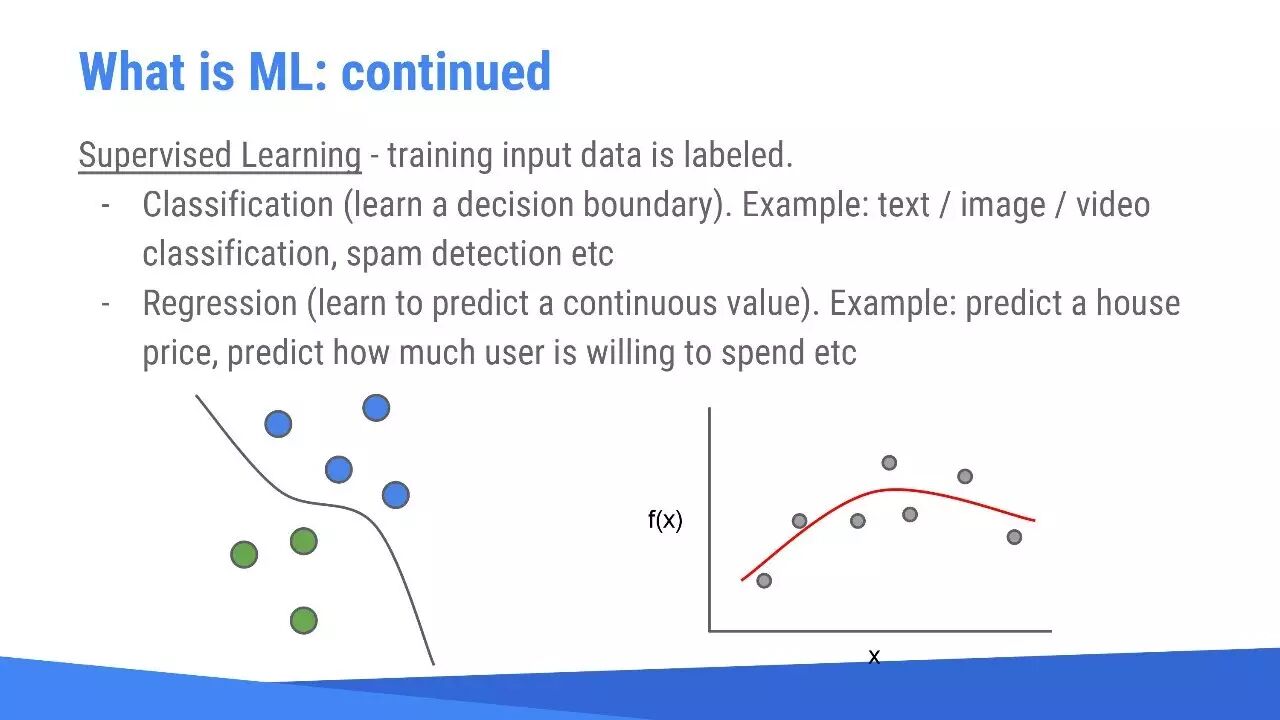 分类(学习决策边界)。 示例:文本/图像/视频分类,垃圾邮件检测等