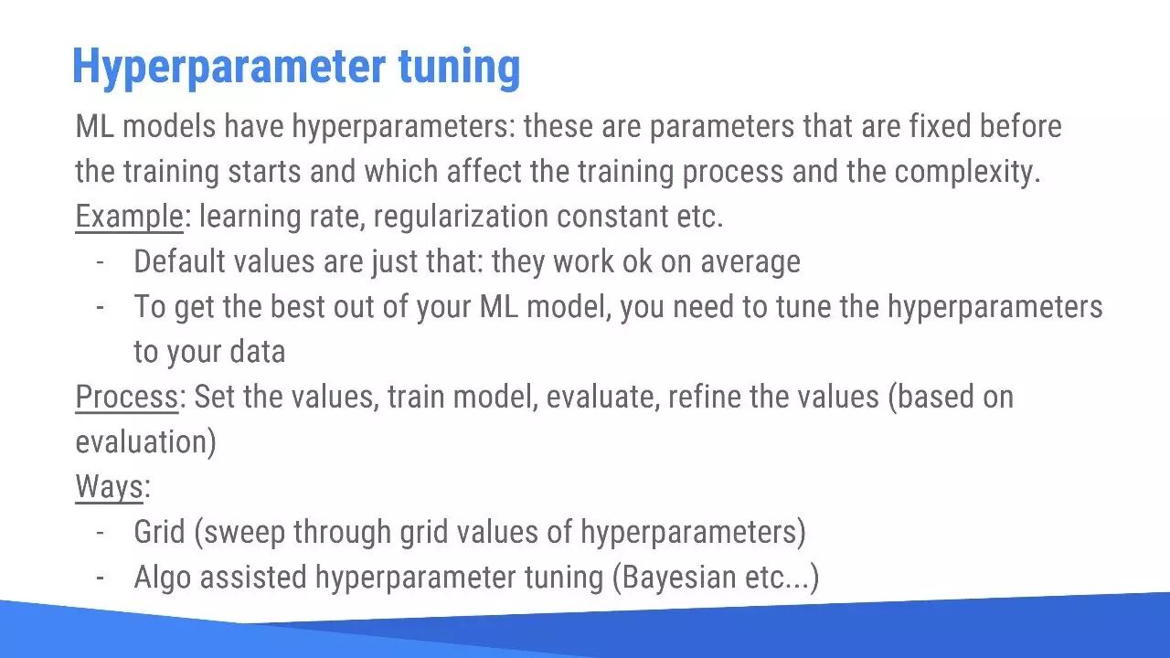 ML模型具有超参数:这些是在训练开始之前就已经固定并且影响训练过程和复杂性的参数。