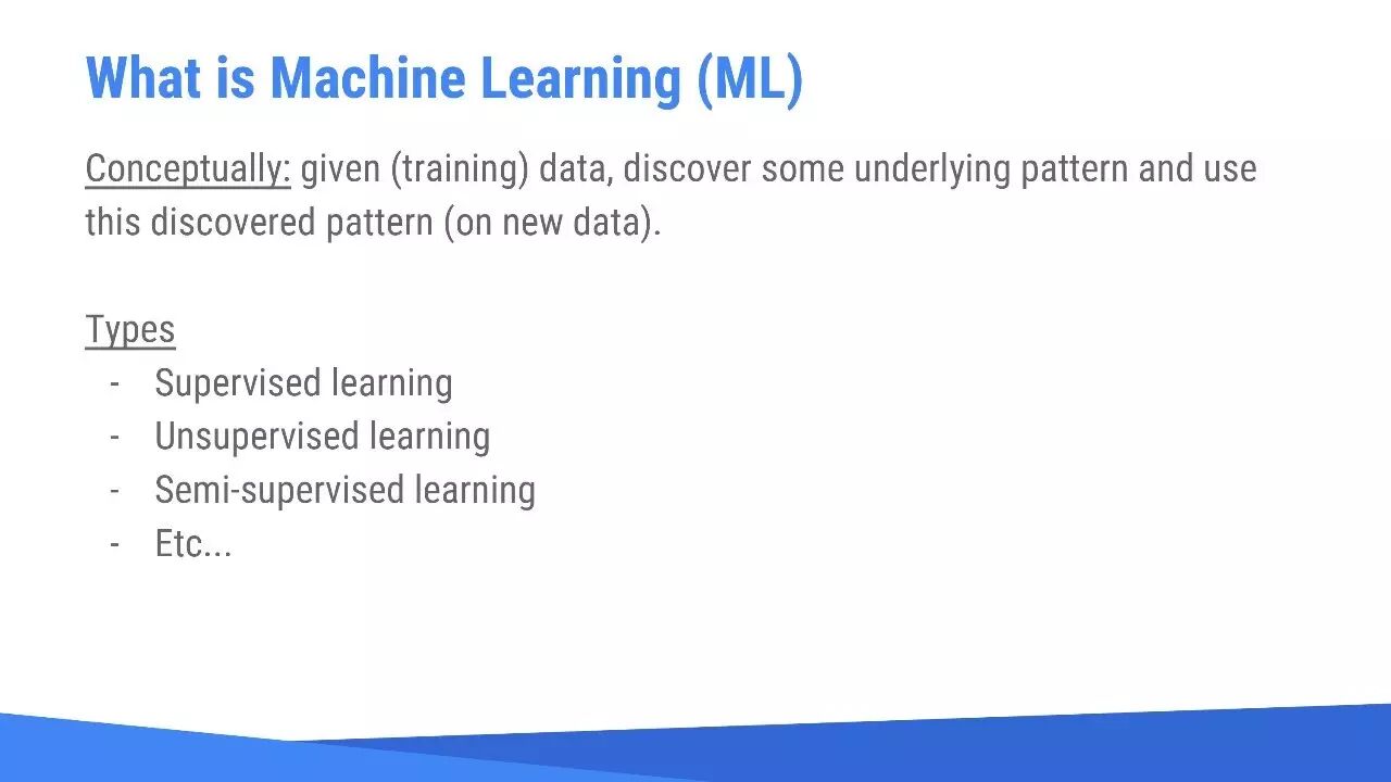 从概念上讲:给定(训练)数据,发现一些潜在的模式并将这个模式应用于新数据。
