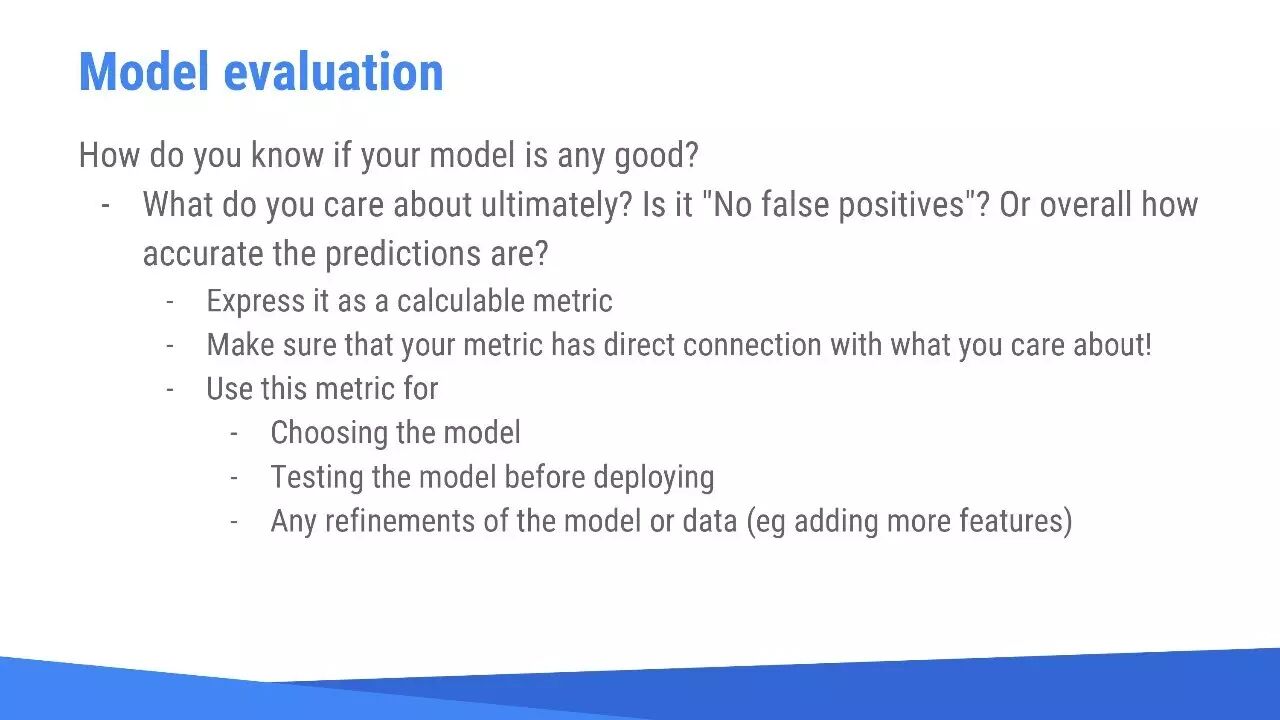 此指标可用于:选择模型;在部署之前测试模型;对模型或数据进行细化(例如添加更多特征)。