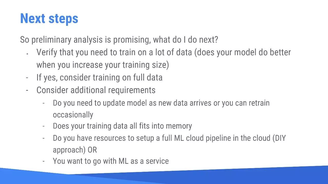 Scale:用完整的数据训练;改进特征(特征工程);尝试不同的算法(模型选择)