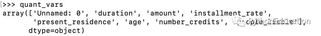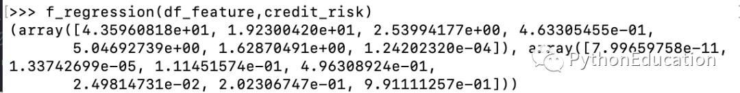 Python里面可以根据dtype对指标进行定量或者定性的区分,int64为定量指标,object则为定性指标,定量指标的筛选本文通过Python sklearn包中的f_regression进行单变量指标筛选,根据F检验值和P值来选择入模变量