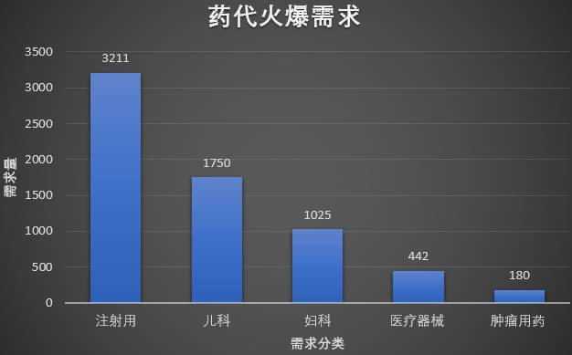 从笔者收集国内7月-10月招商代理数据来看,注射类是代理需求最热门品种,排名第一;儿科类需求排名第二;妇科类排名第三;医疗器械和肿瘤类品种分别排名第四和第五。