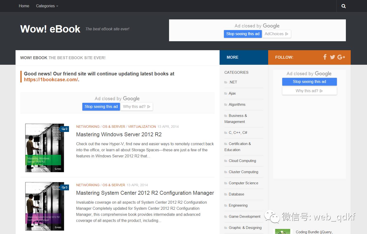 一个博客类型的站点,主要以分享电子图书为主,里面基本都是最新的英文版编程图书,感兴趣的朋友去可以看看,这里就不截图了。